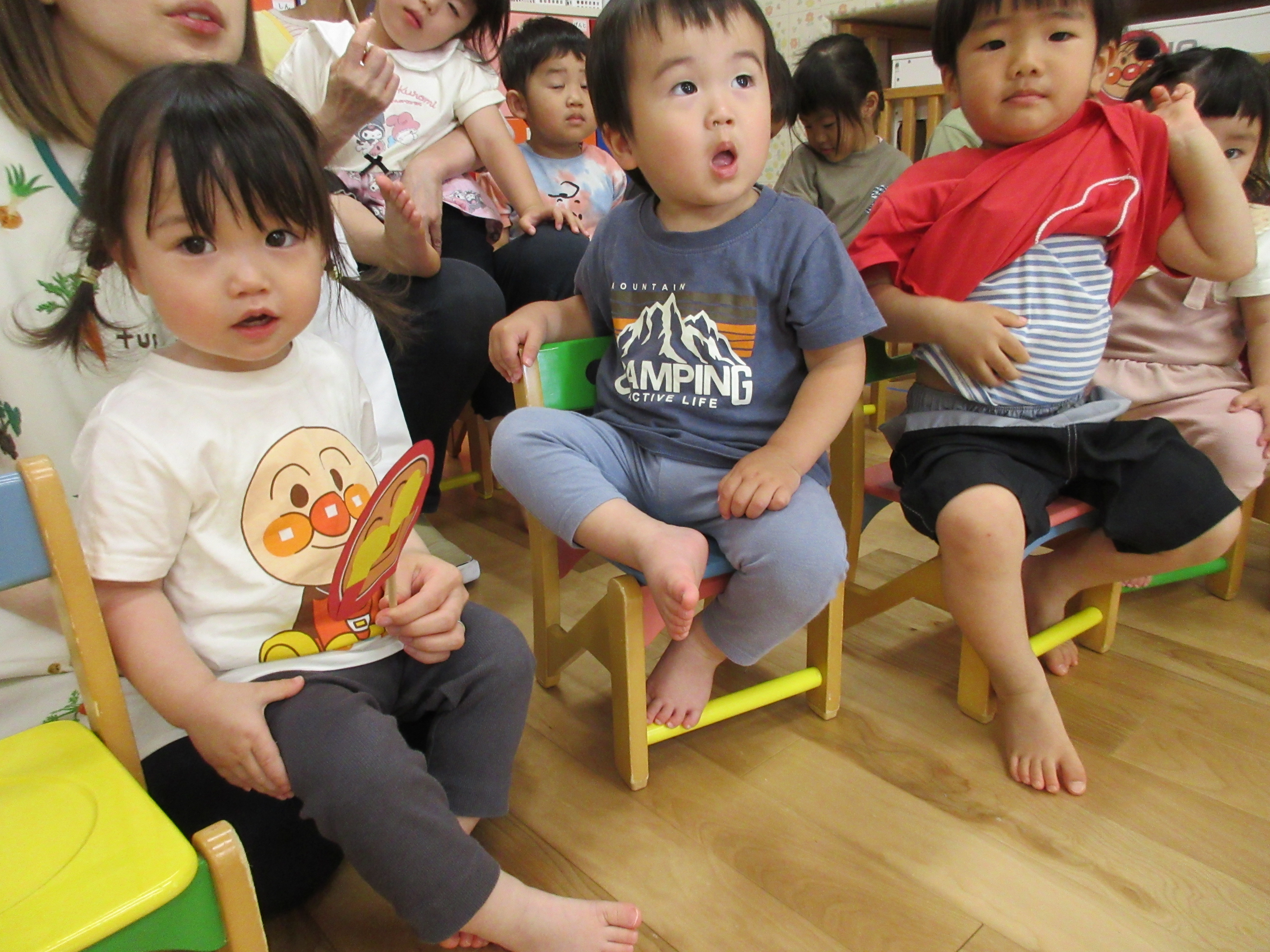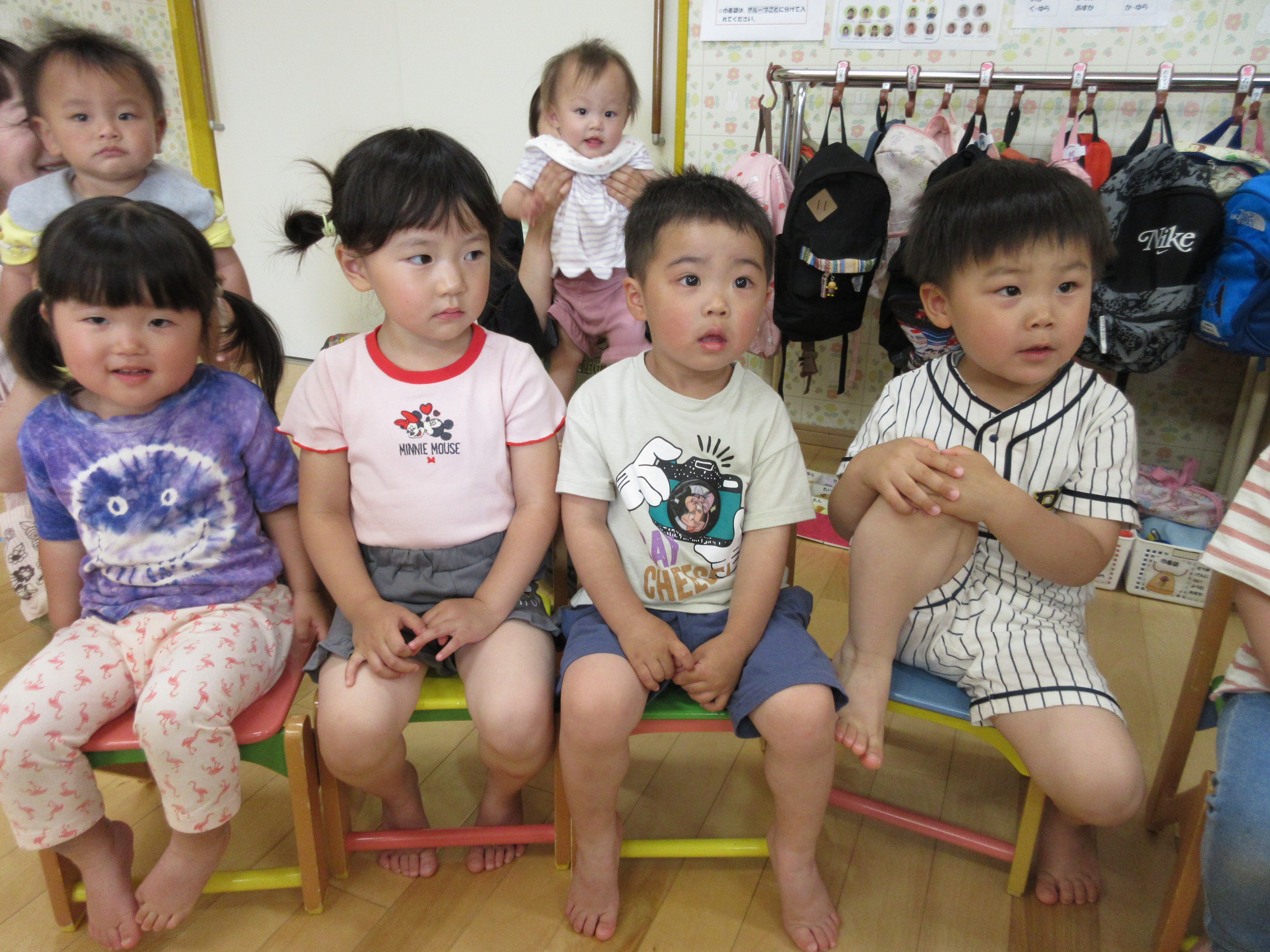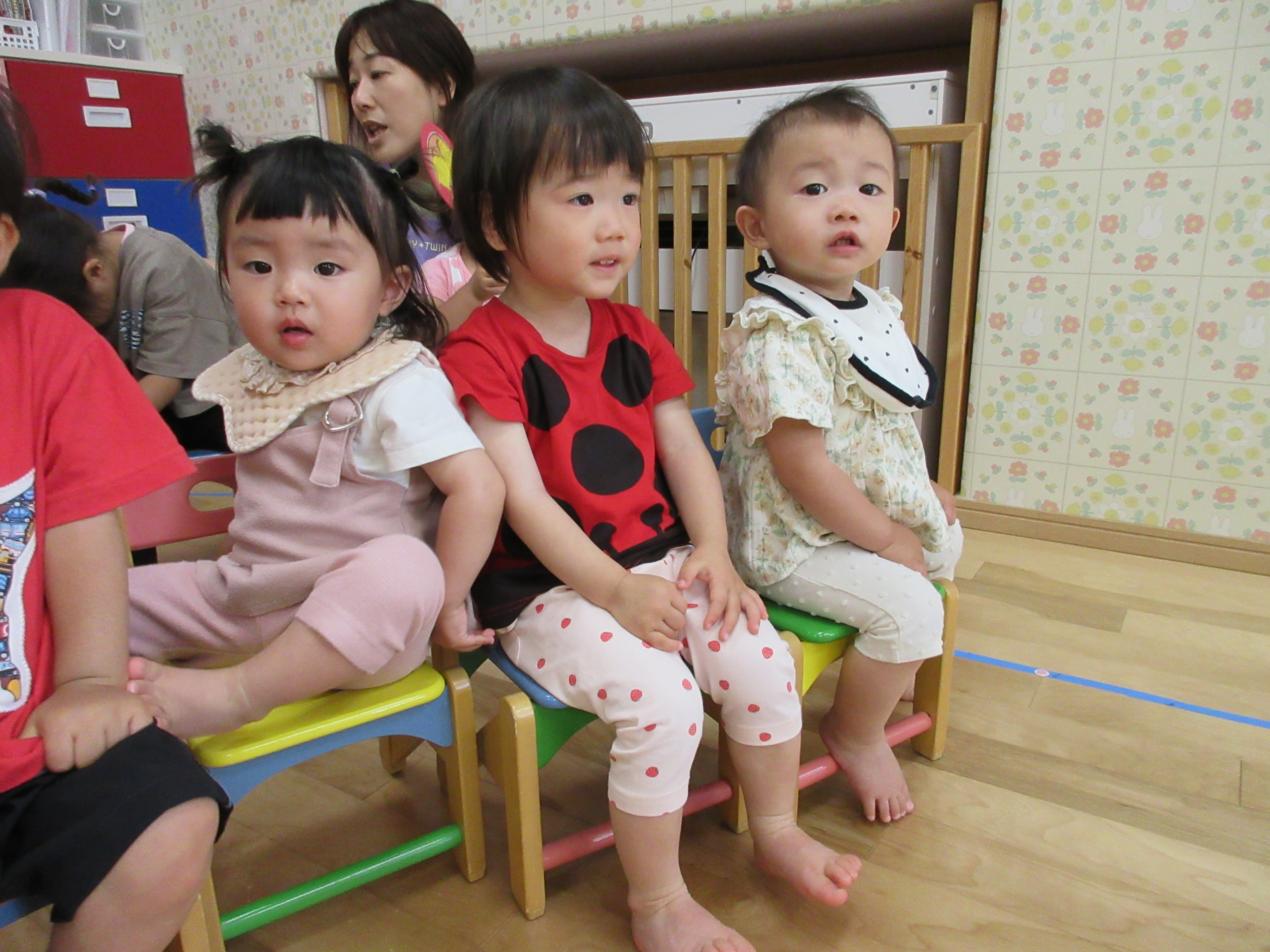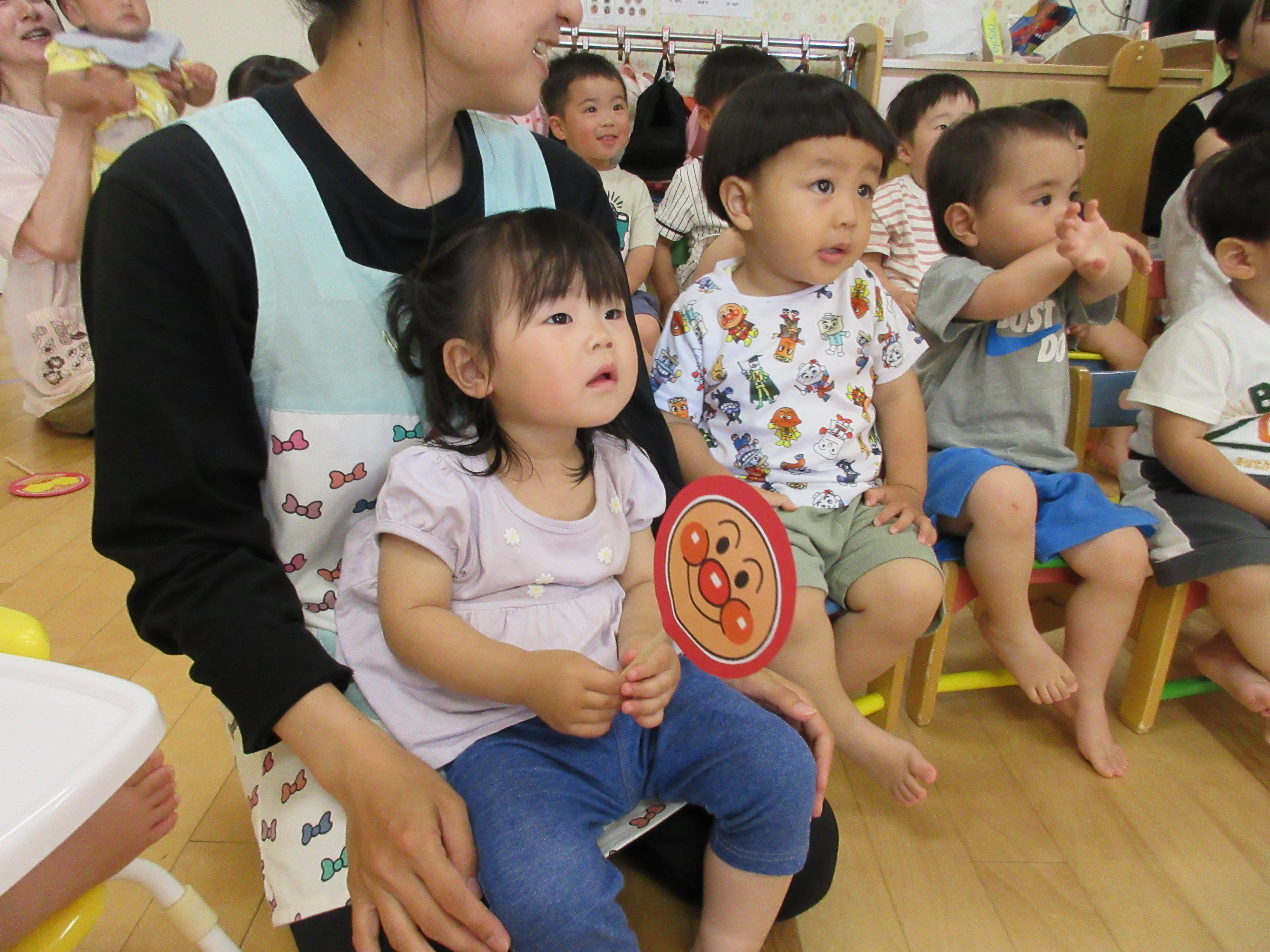 未満児組合同で朝のお始まり。