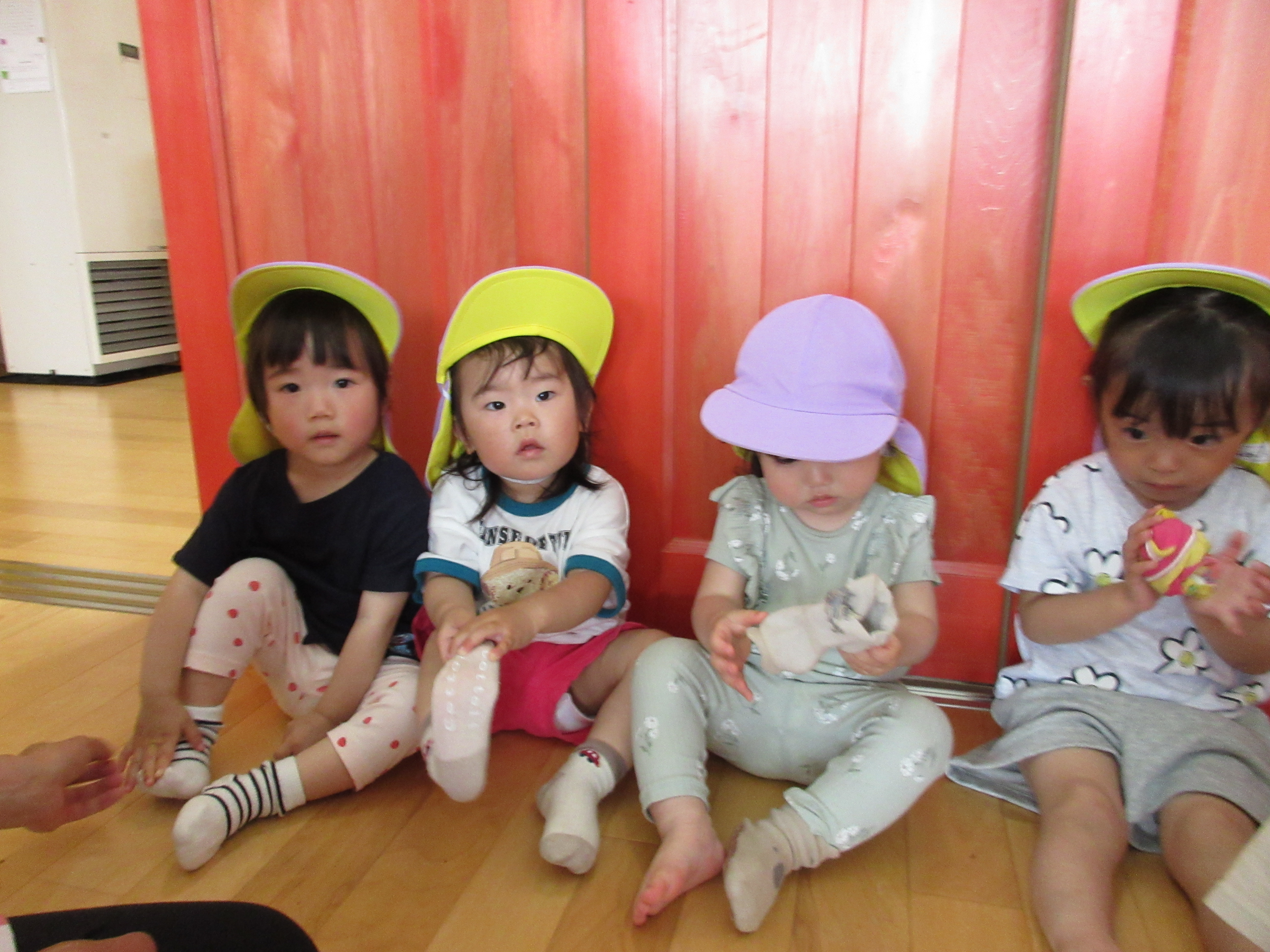 みかん組、お外遊びの後は靴下脱ぎまーす!