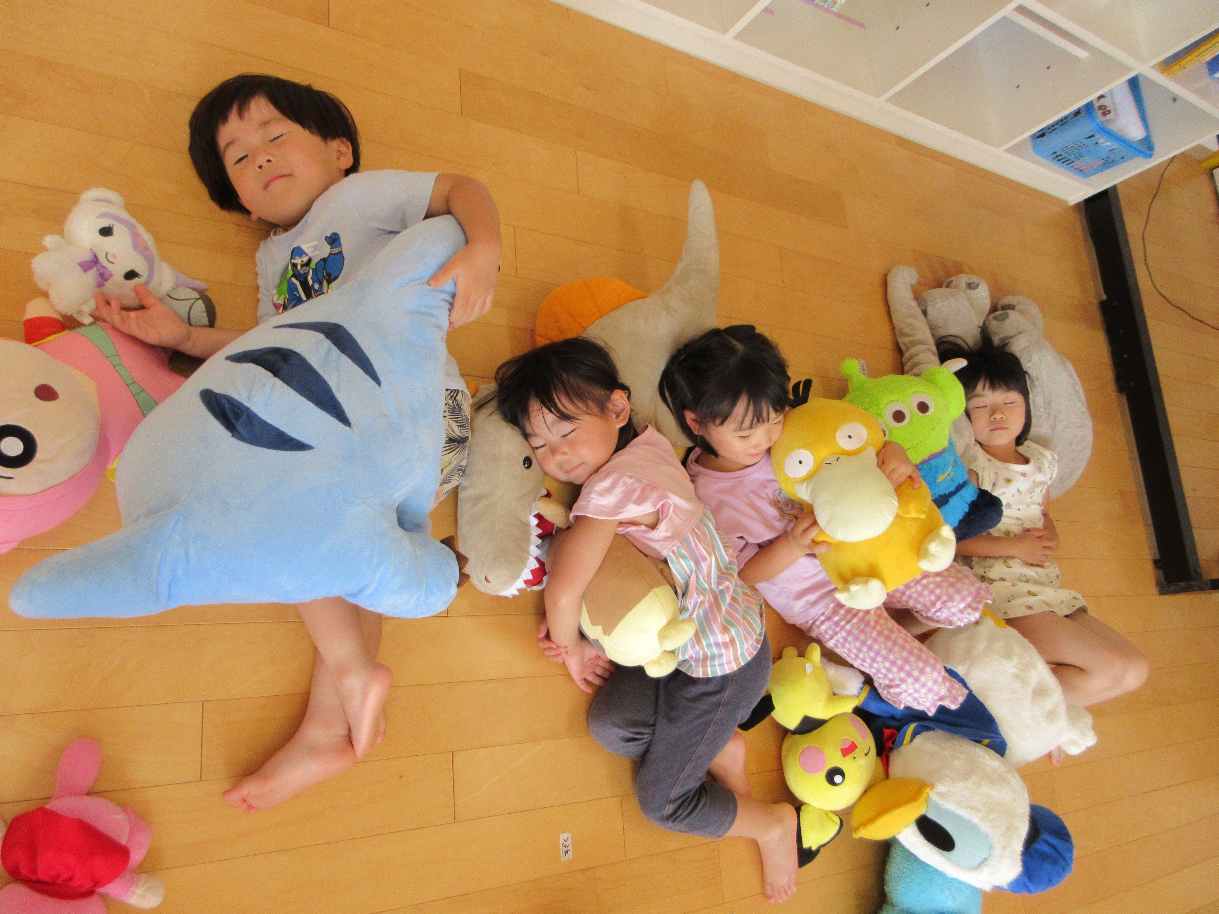 ぬいぐるみと一緒に「おやすみー」