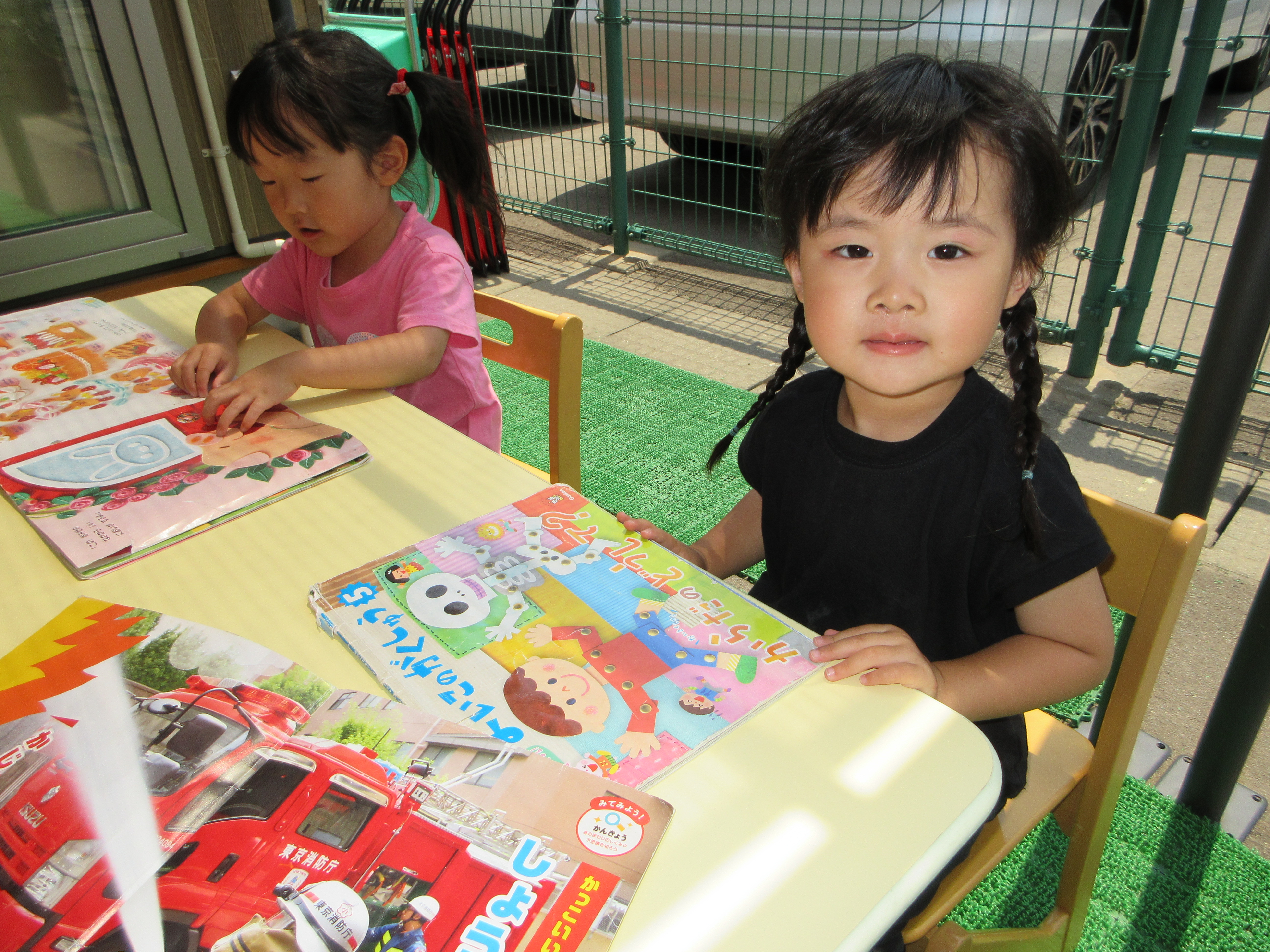 青空の下で絵本を見るのもいいわ(^^♪