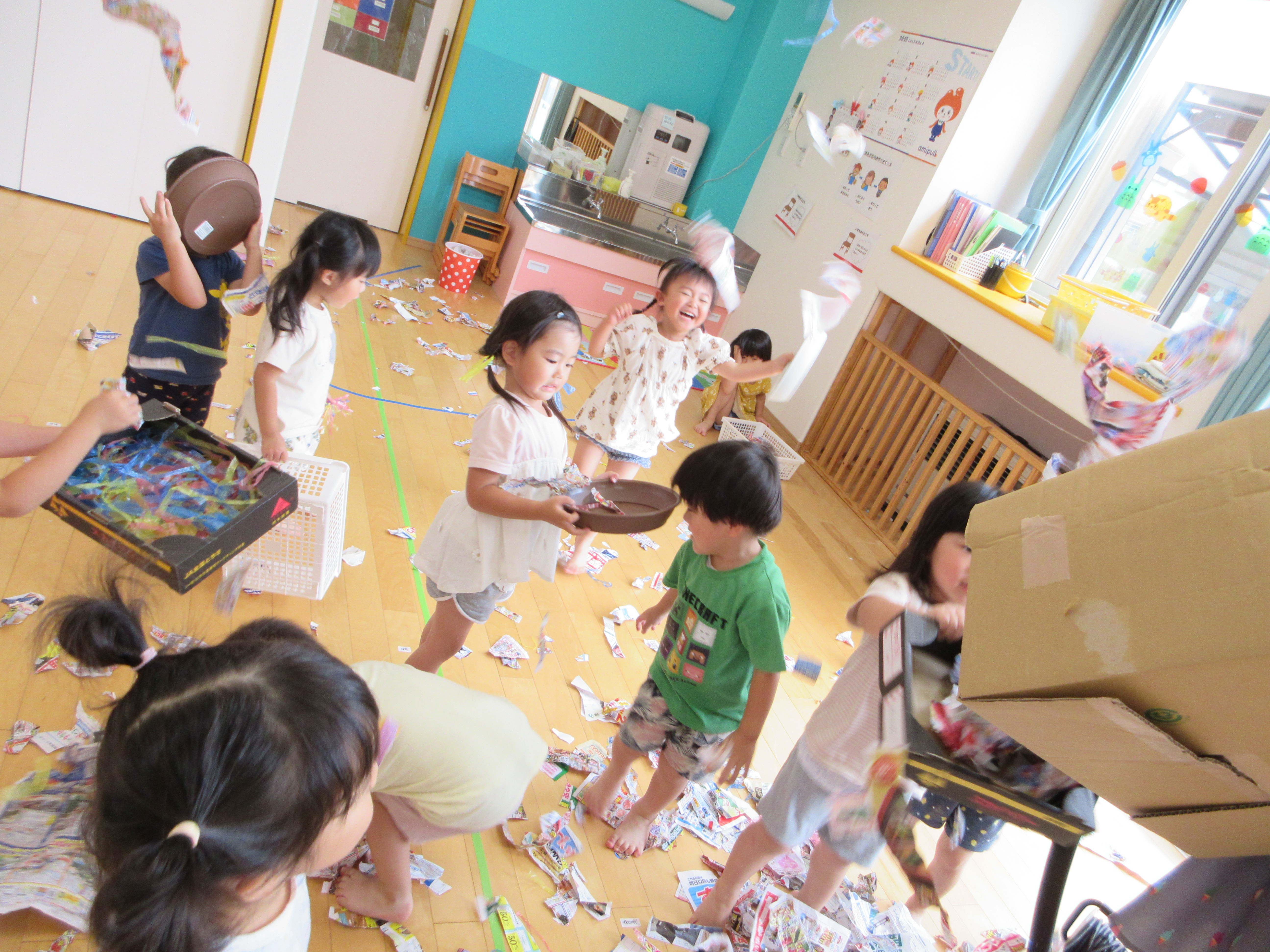 ばなな組は新聞紙遊び(*^^*)
