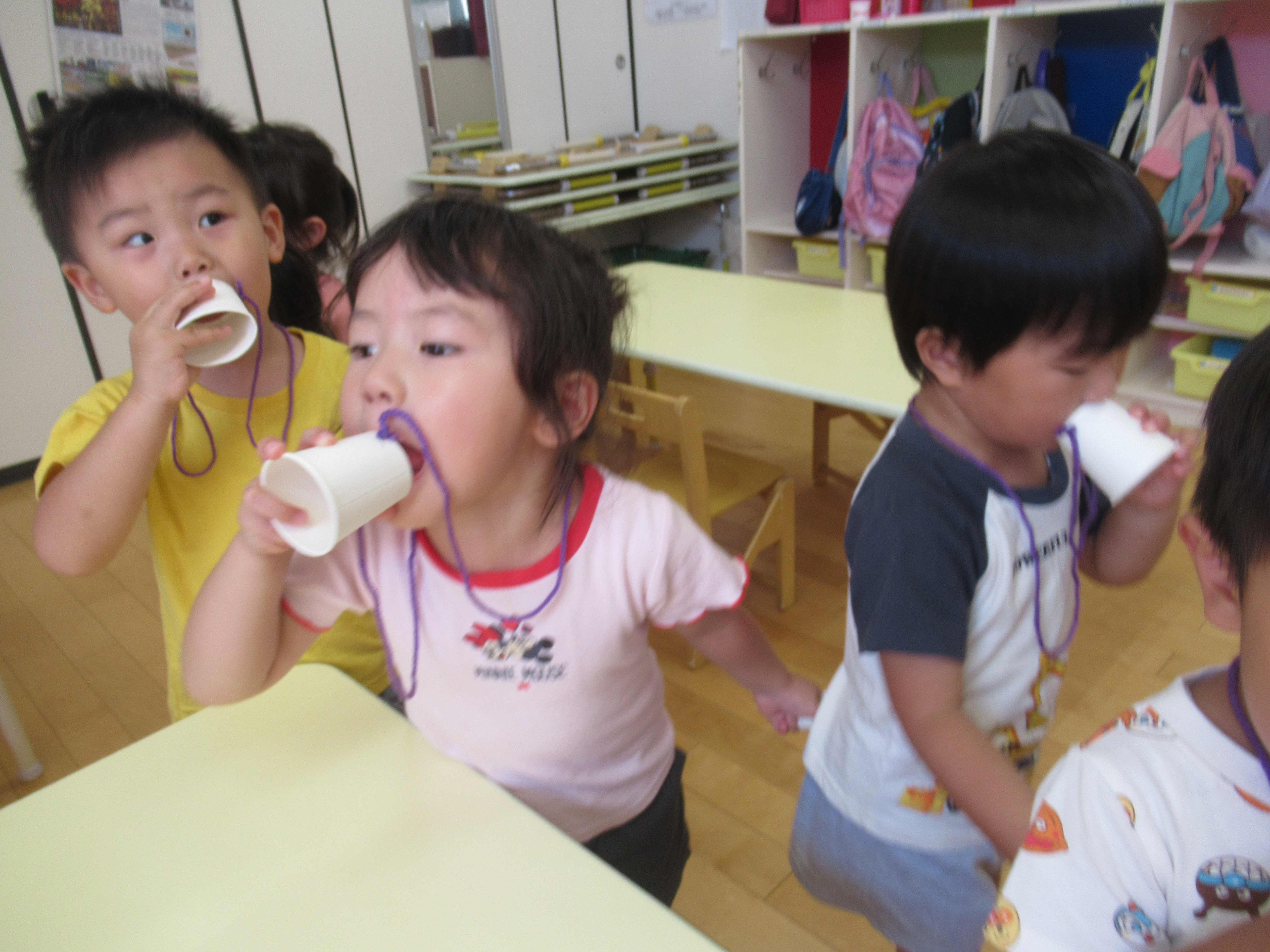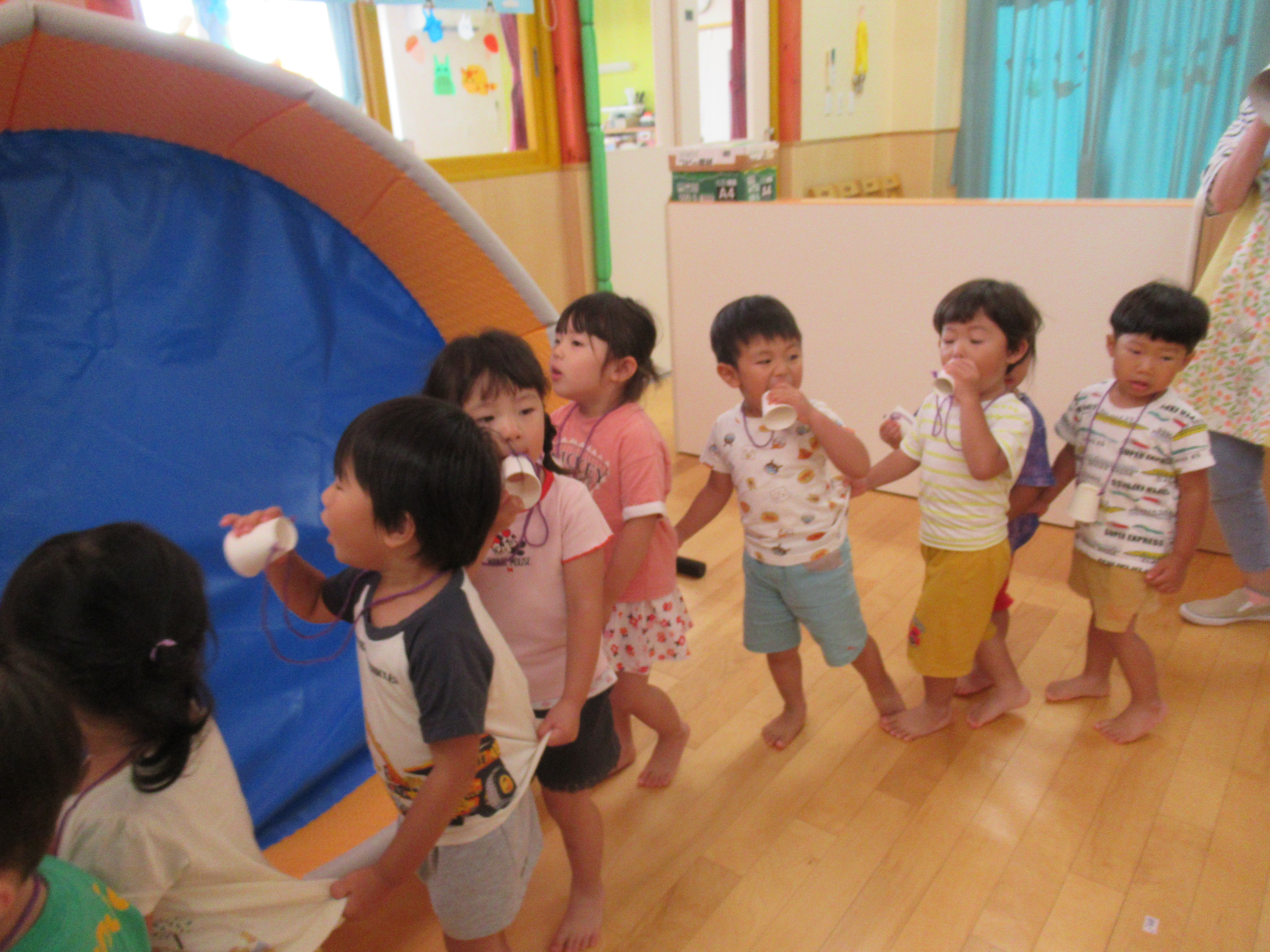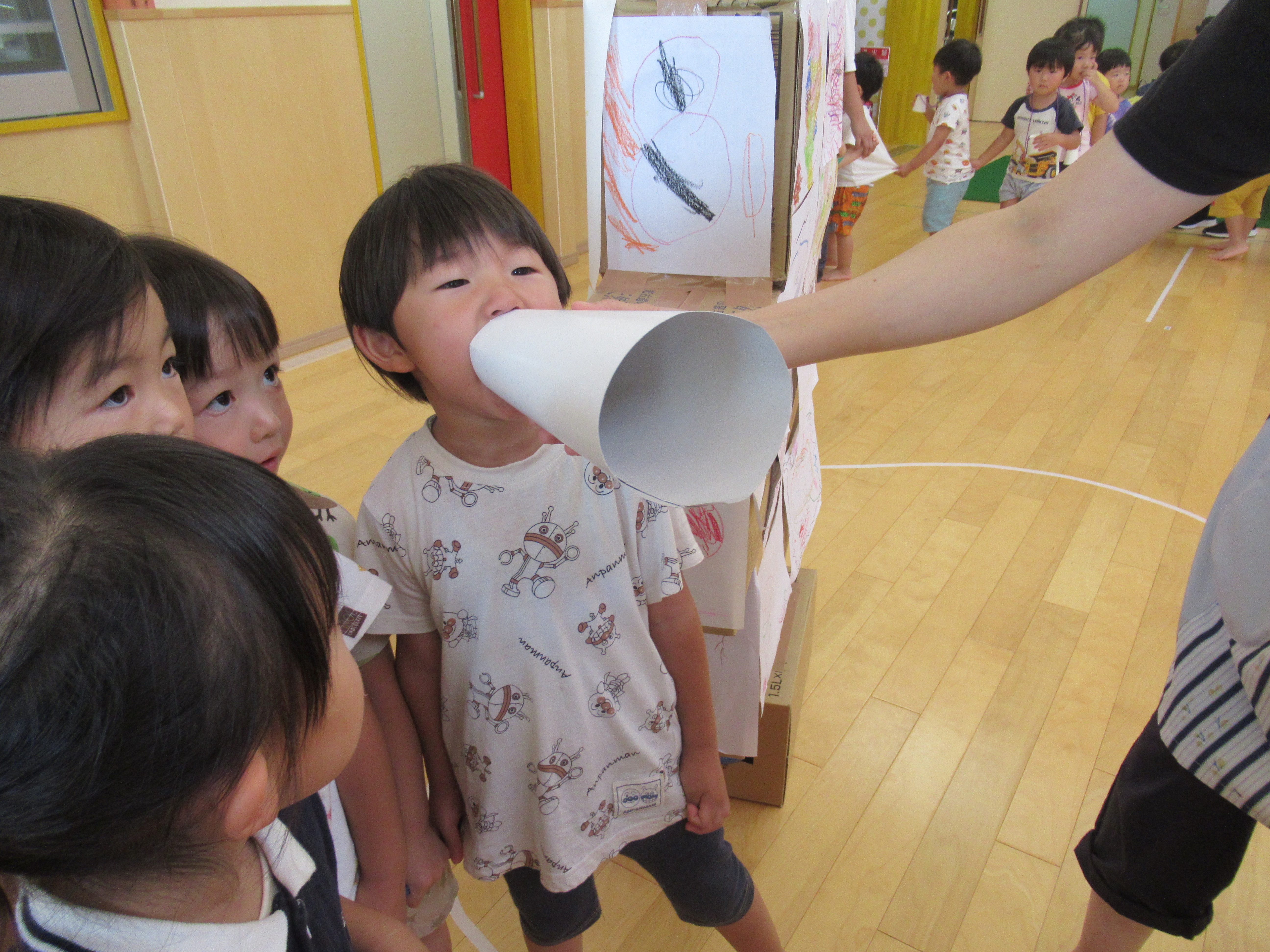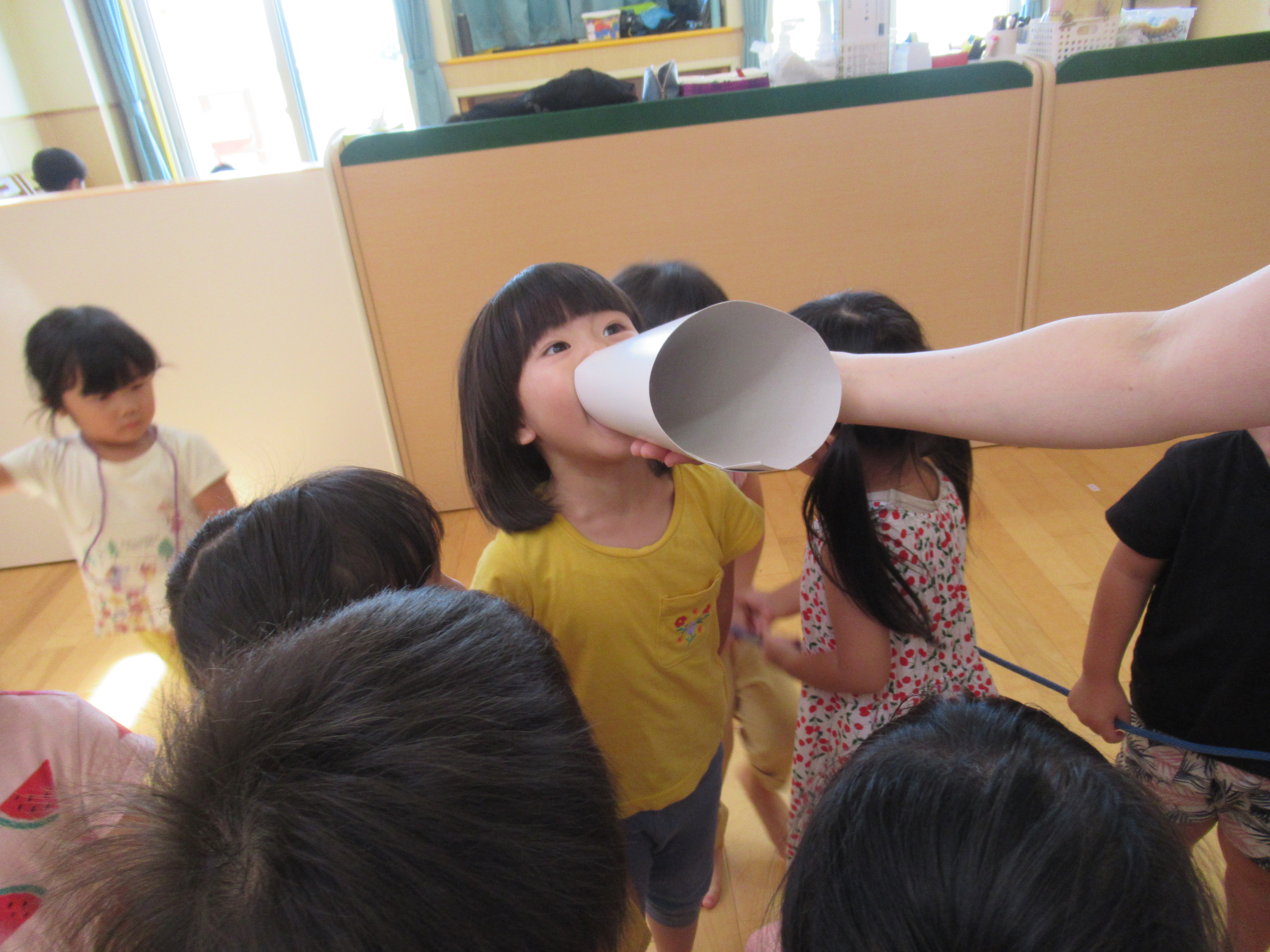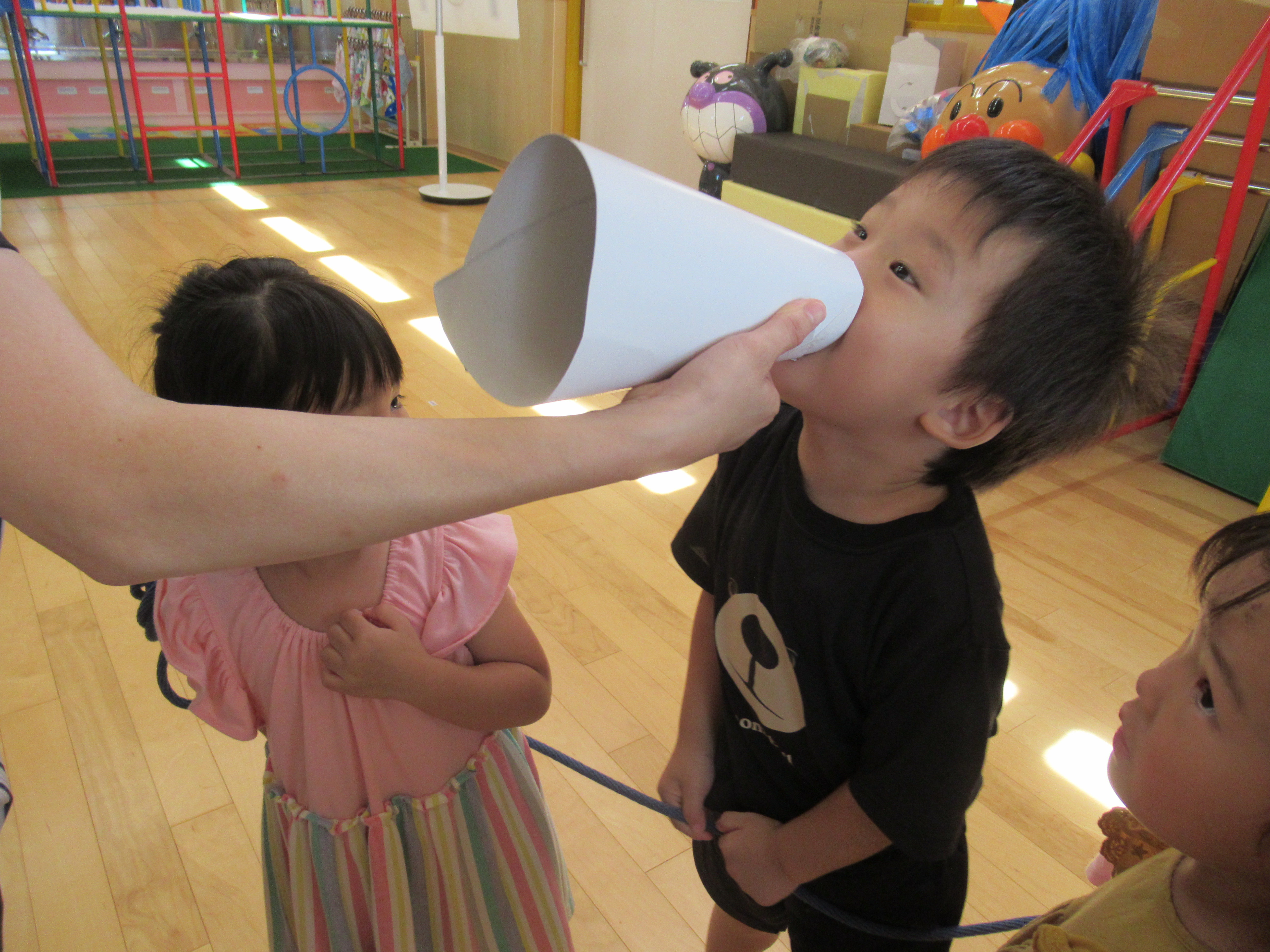 手作りメガホンで「ヤーヤードー」