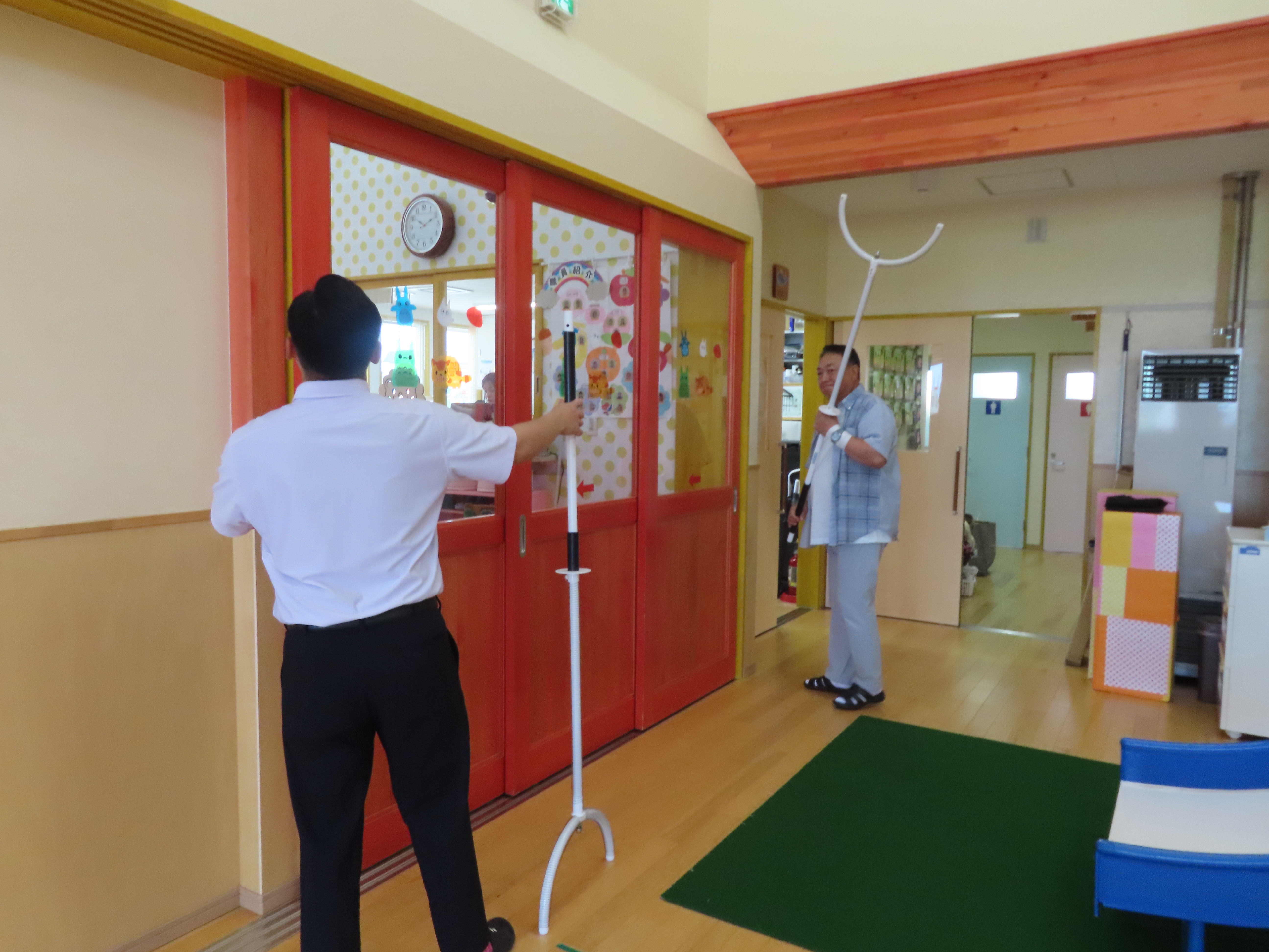 園児が避難している間に「さす又」を準備。