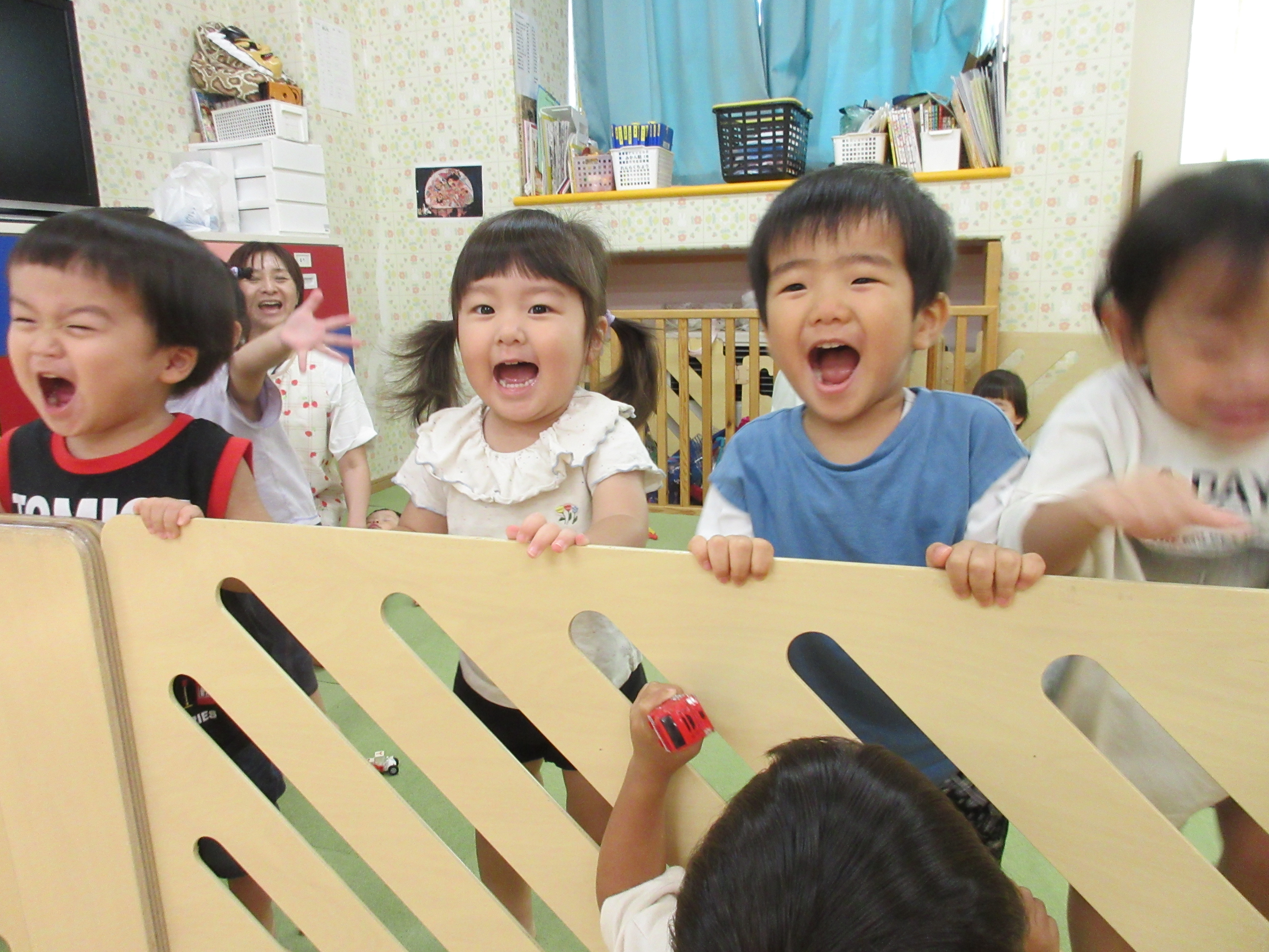 さくらんぼ組、お部屋で滑り台ごっこ(*^^*)