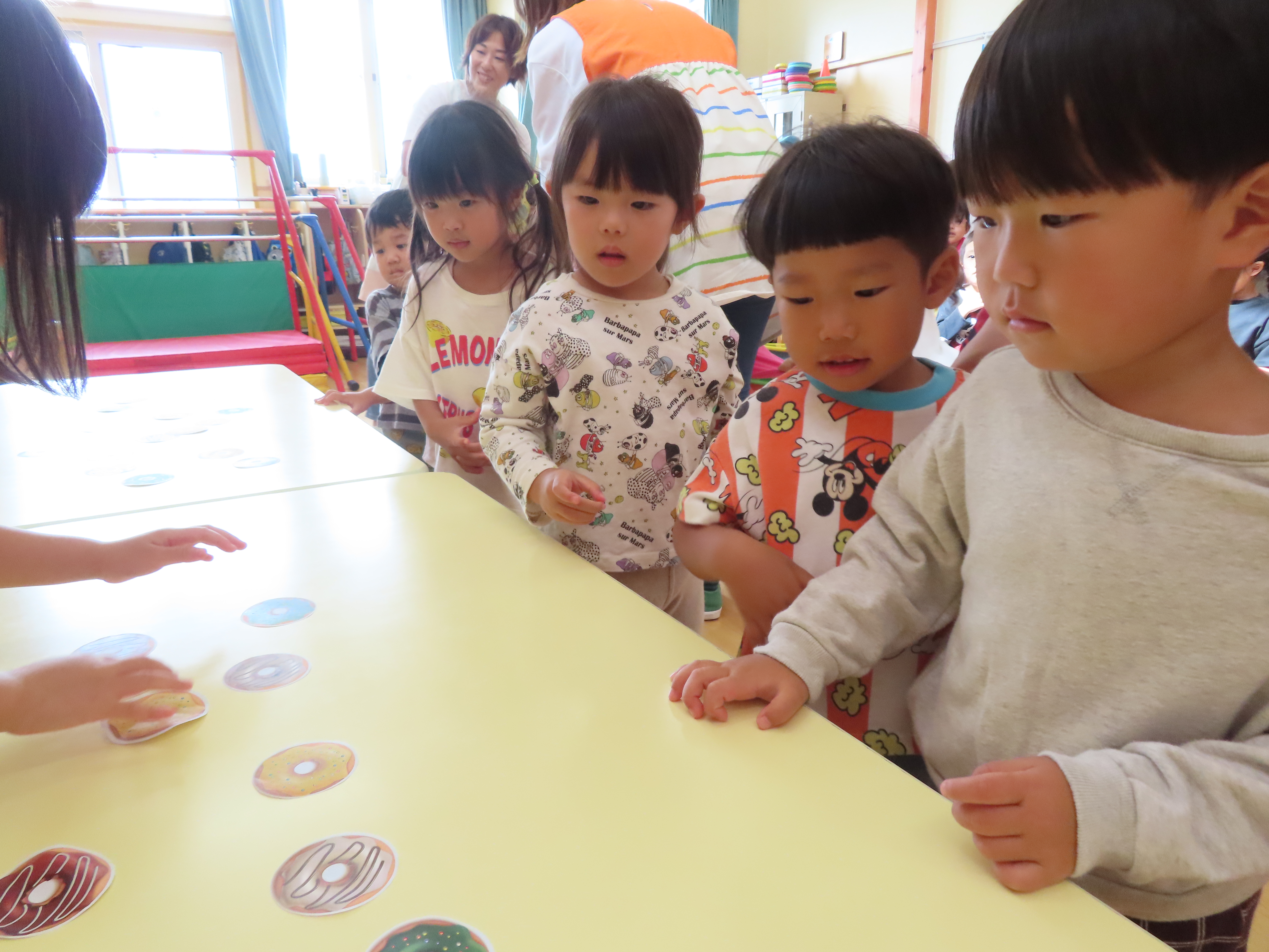 今日のお楽しみ「ドーナツやさん」のパネルシアター!