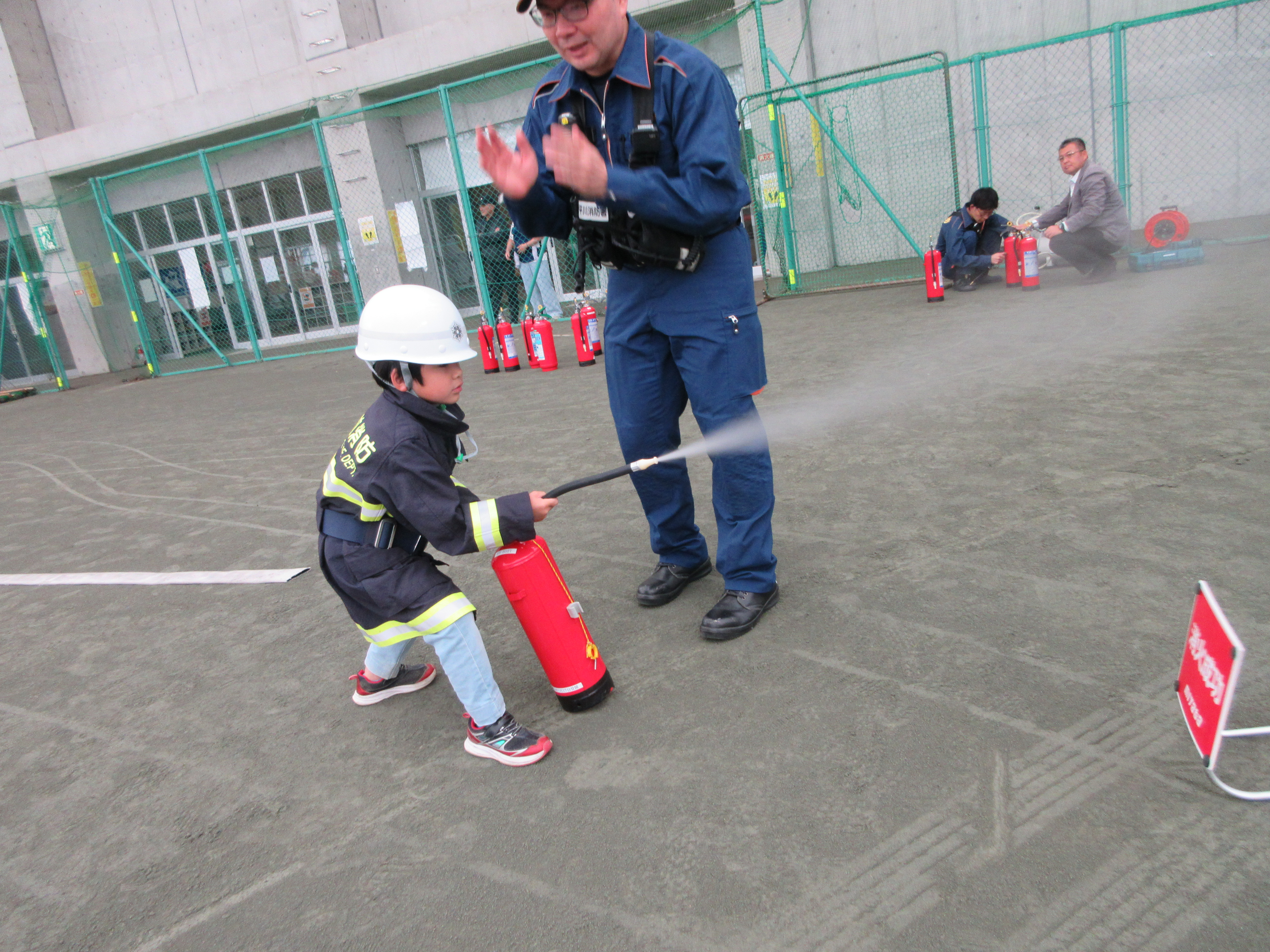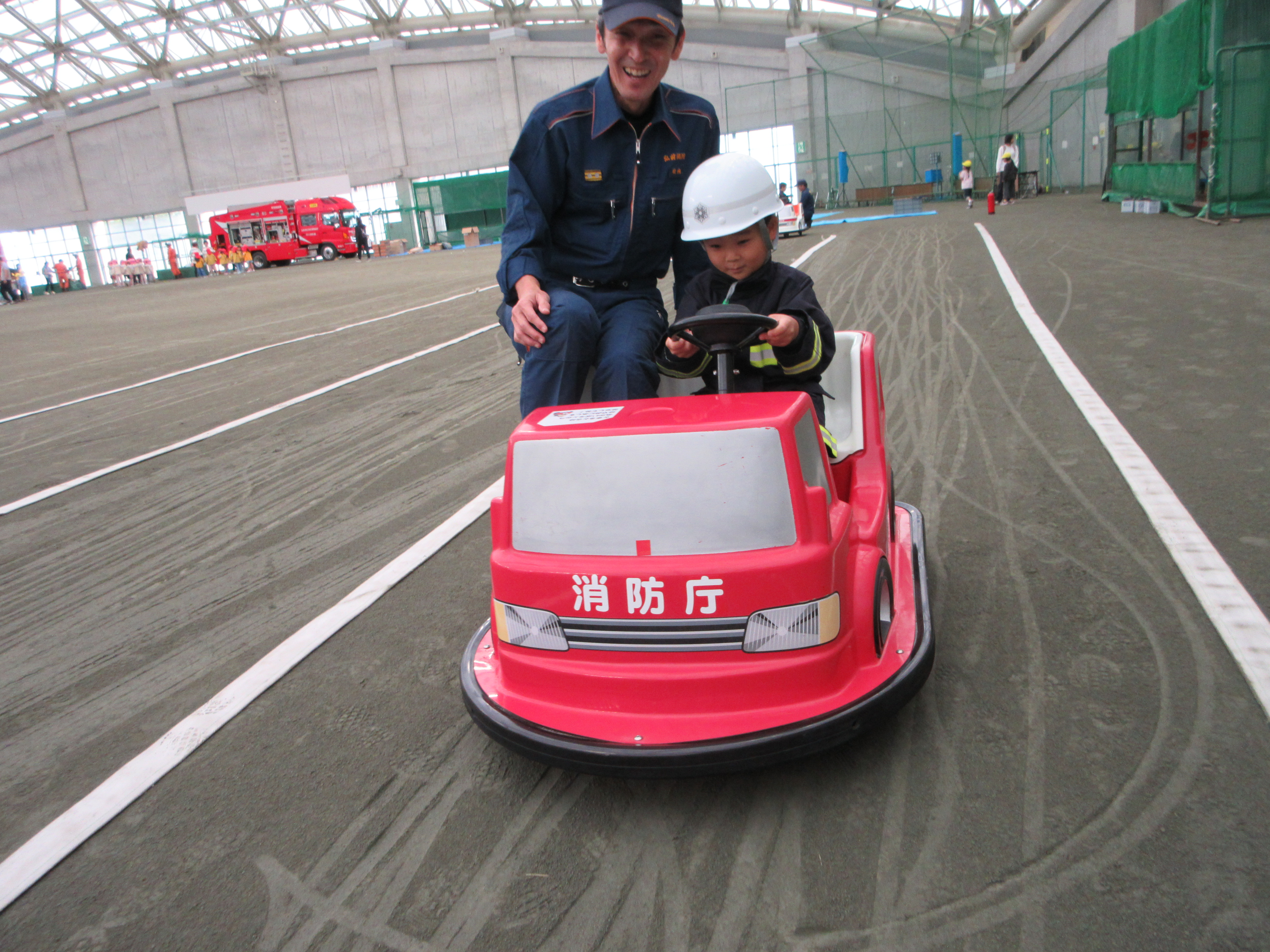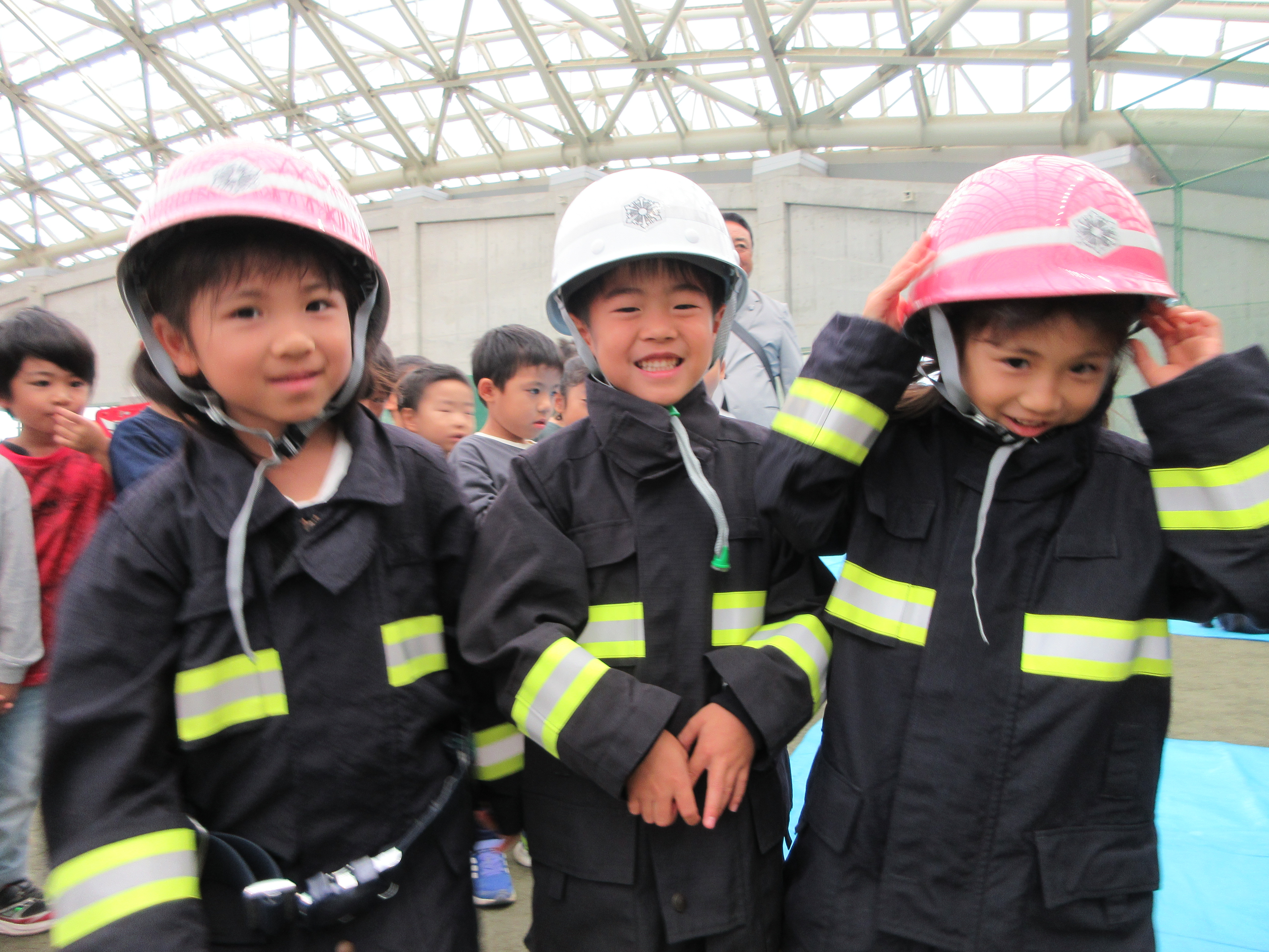 「消防士体験コーナー」ピンクのヘルメット可愛い〜!