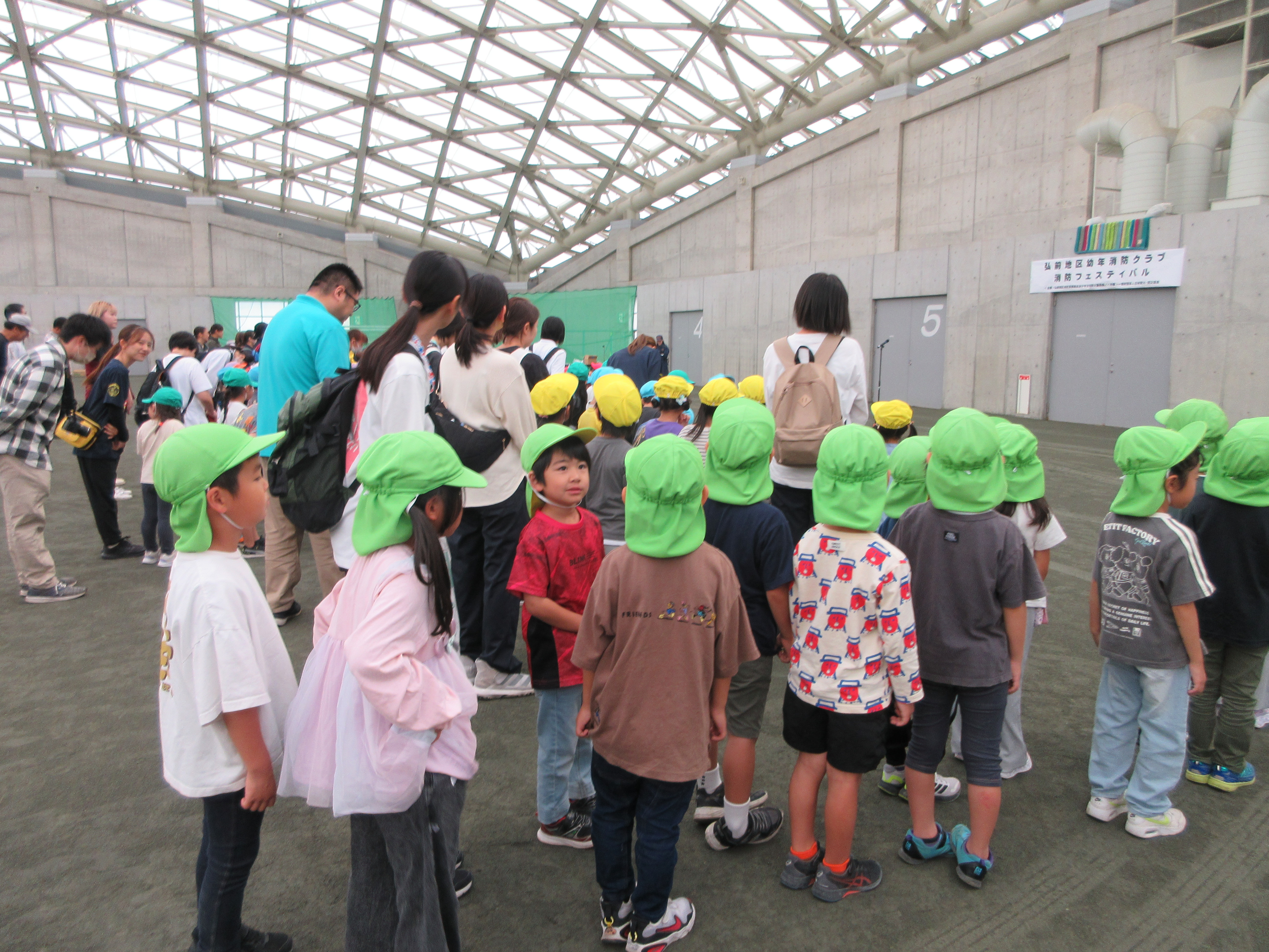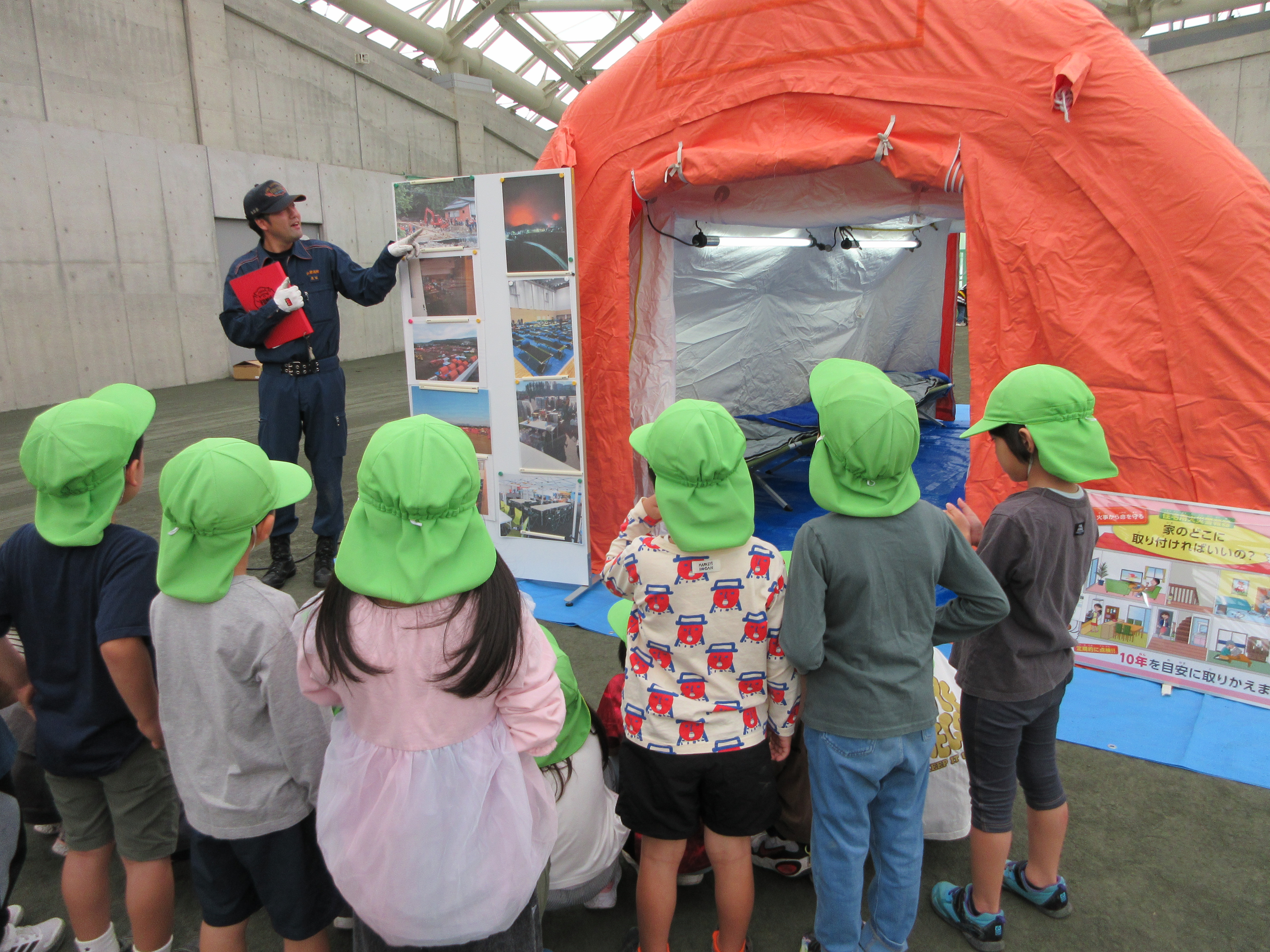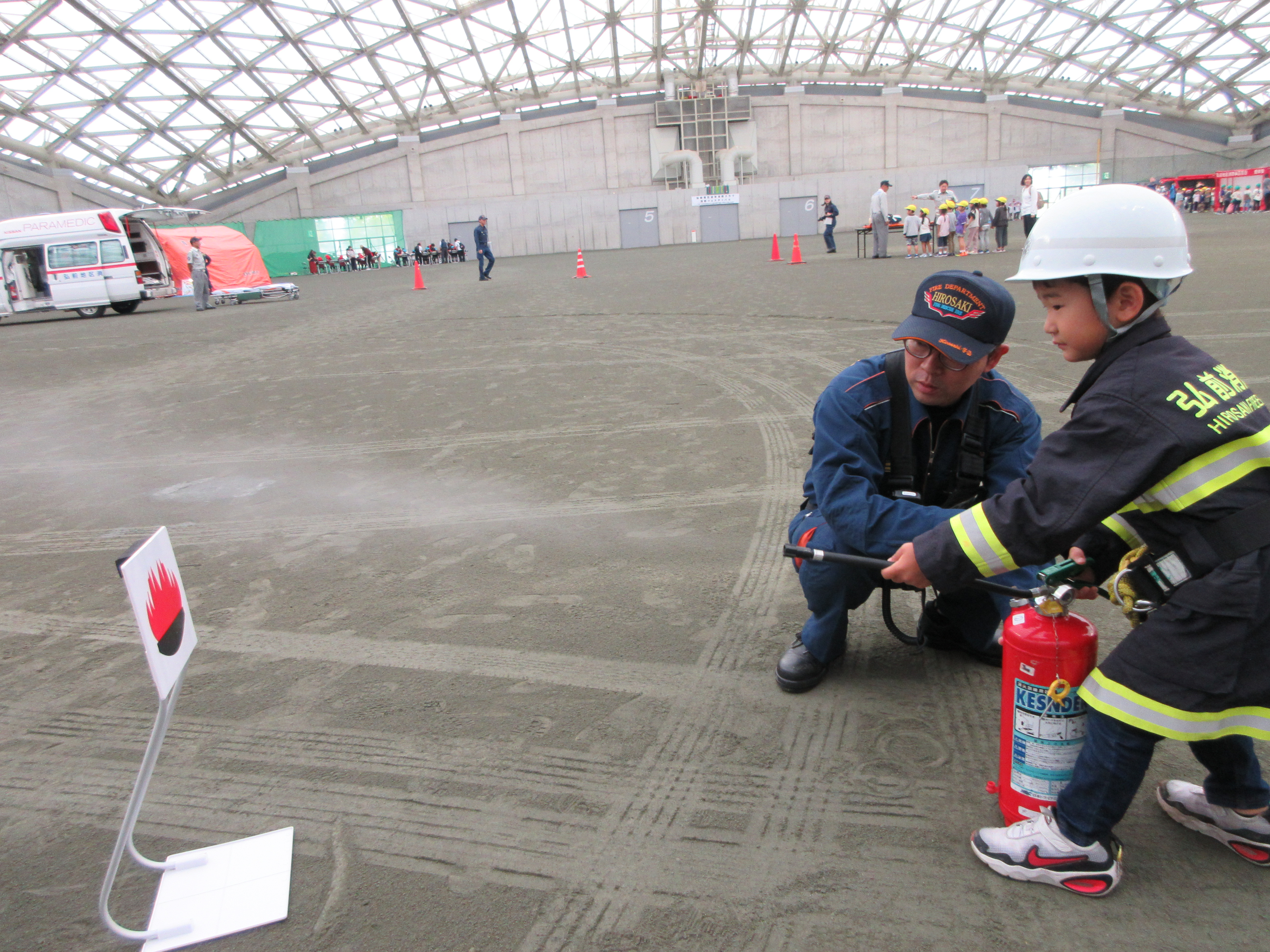 「消防士体験コーナー」ピンクのヘルメット可愛い〜!