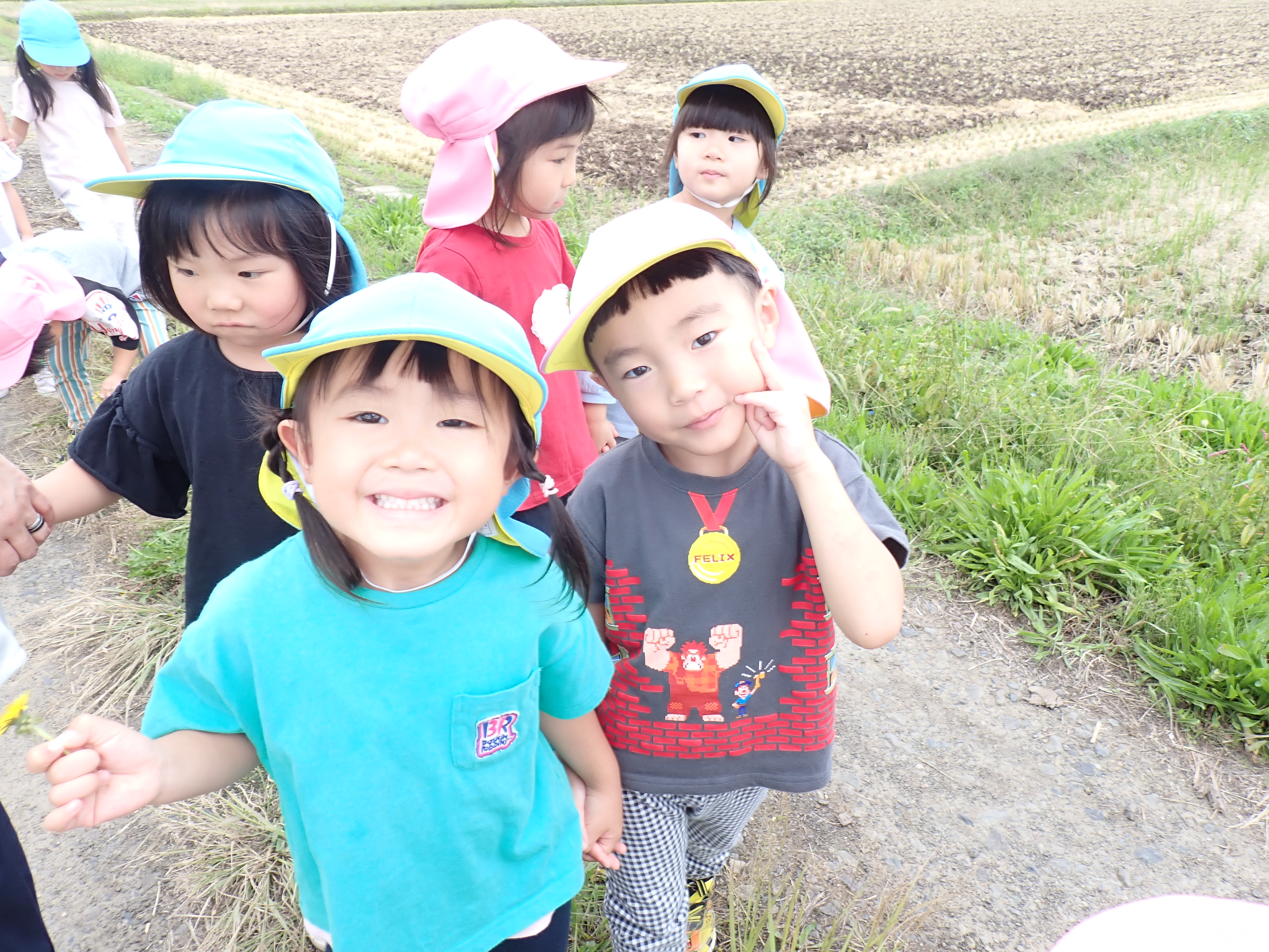 農道をお散歩。バッタやトンボを見つけたよー!
