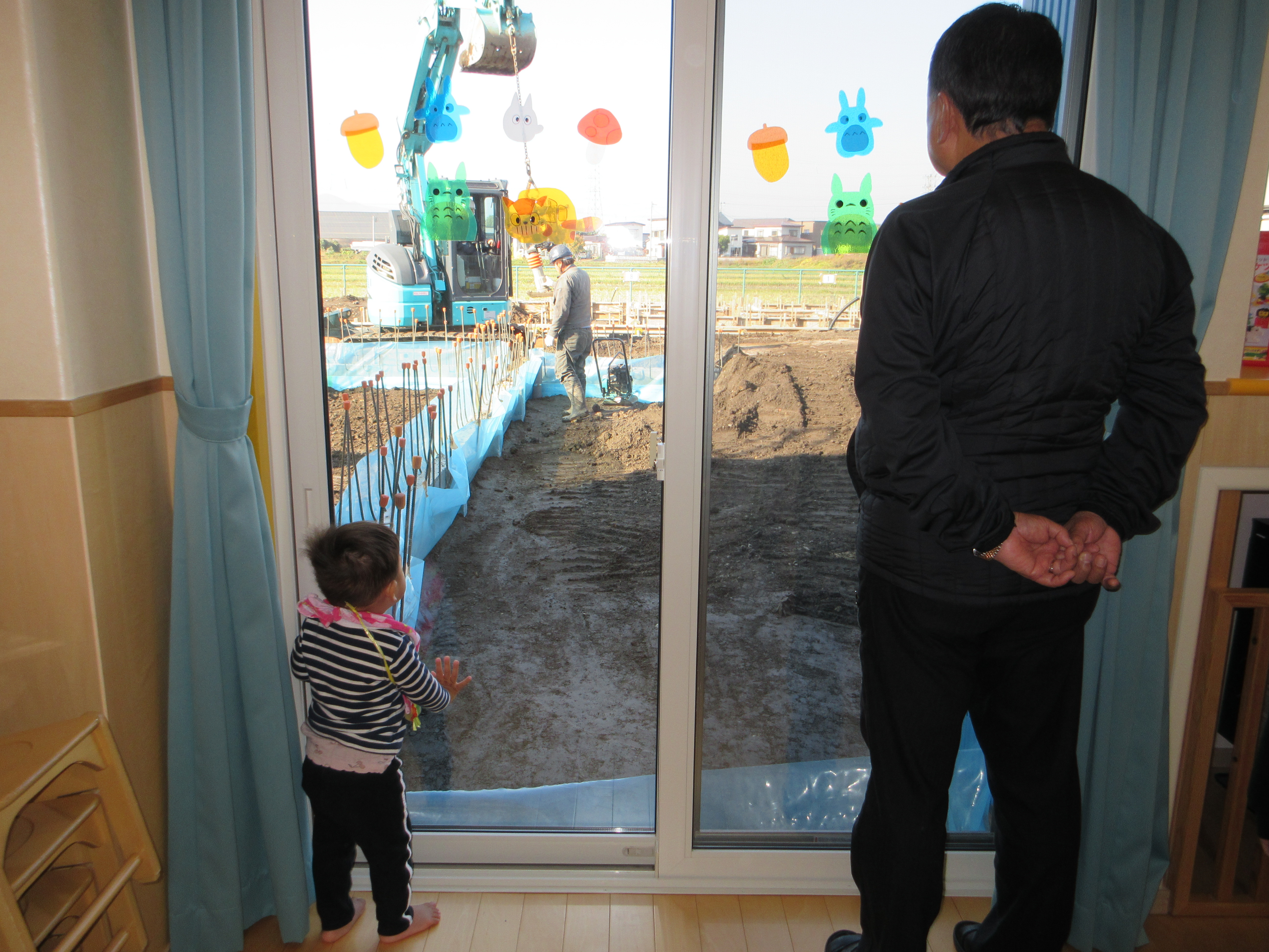 園長先生と工事の様子を見学中!