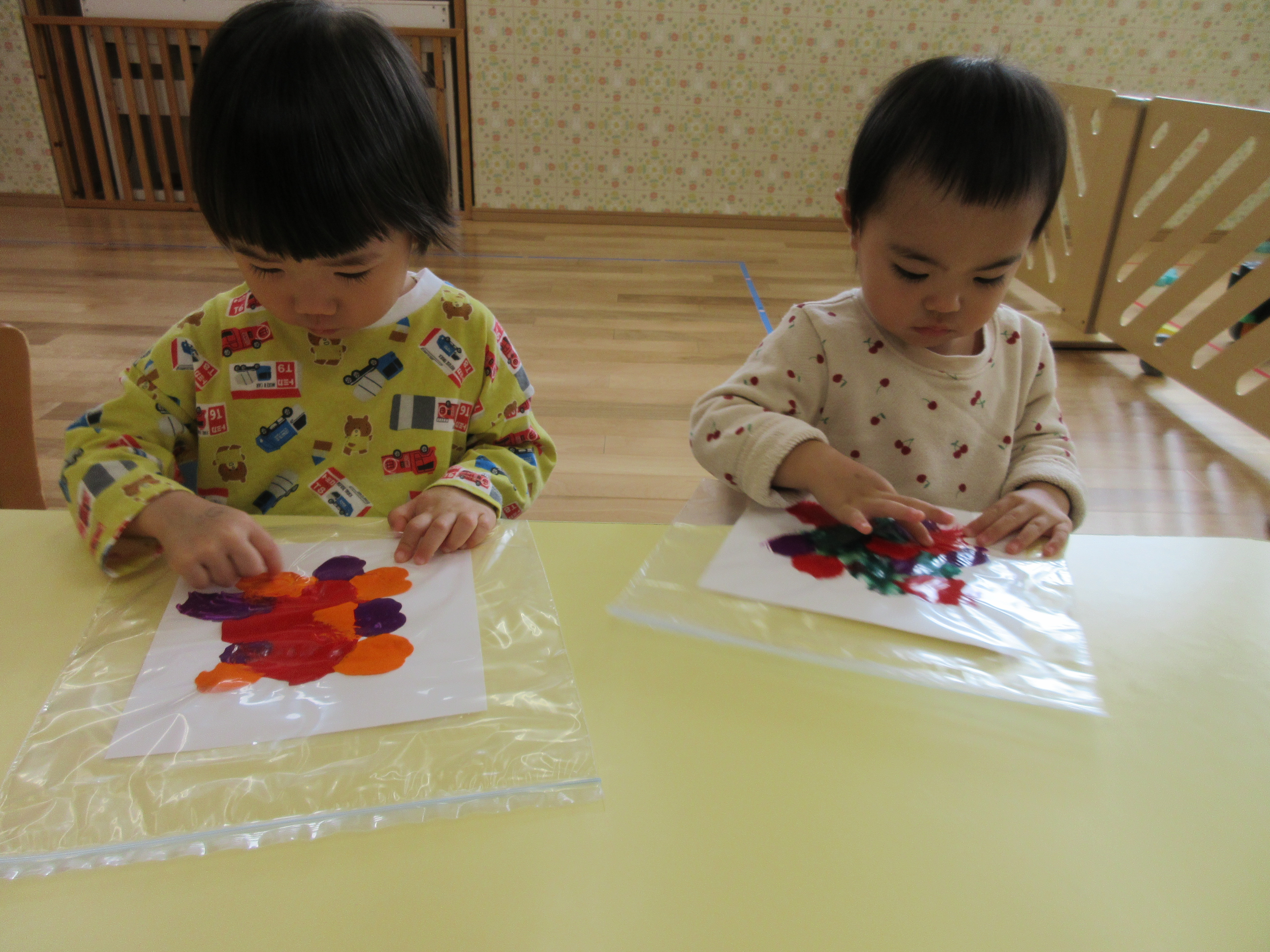 絵の具の感触を味わっています(*^^*)